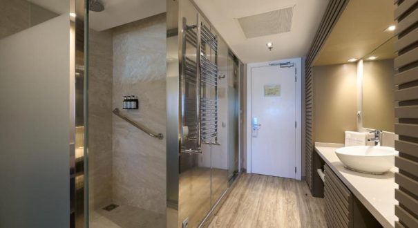 • حمام اختصاصی با دوش بارانی یا وان، حوله و لوازم بهداشتی لوکس
