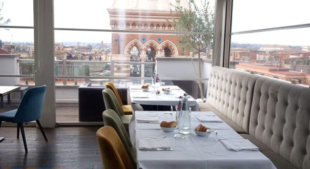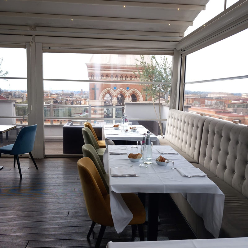 Vineria در طبقه دهم قرار دارد، فضایی شیک برای صرف نوشیدنی و گپوگفت با منظره روشنایی شهر رم بهویژه در شب.