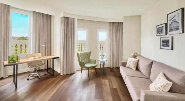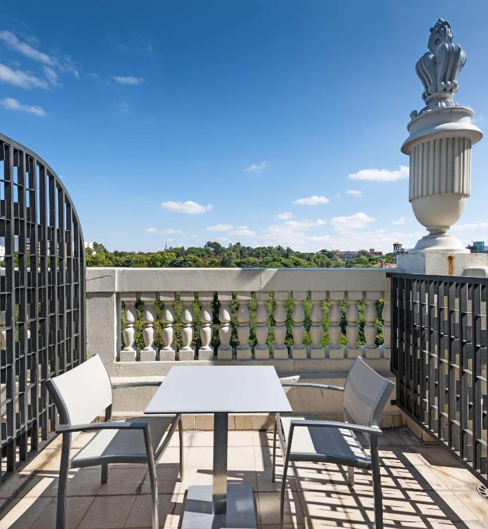 هتل NH Madrid Nacional یک هتل ۴ ستاره شیک و مدرن است که در قلب مادرید، در خیابان Paseo del Prado و در کنار مثلث هنری شهر (موزه پرادو، موزه رینا سوفیا و موزه تیسن-بورنمیزا) قرار گرفته است. این هتل در ساختمانی تاریخی با طراحی کلاسیک دهه ۱۹۲۰ ساخته شده و در سالهای اخیر بازسازی شده تا امکانات مدرن و راحتی بیشتری را برای مهمانان فراهم کند. فضای داخلی روشن، دکوراسیون معاصر و چشمانداز فوقالعاده به پارک Retiro و خیابانهای مرکزی مادرید، از ویژگیهای شاخص این هتل هستند.