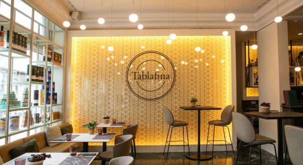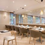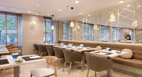 رستوران داخلی با منوی اسپانیایی و بینالمللی.