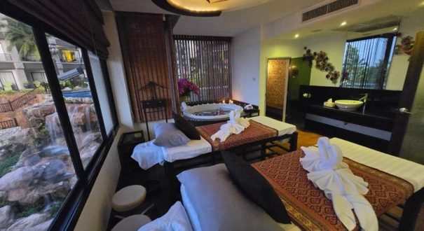 فضاهای عمومی شامل استخر روباز با منظره دریا، مرکز اسپا، چندین رستوران، بار ساحلی و لابی بزرگ با طراحی تایلندی است.