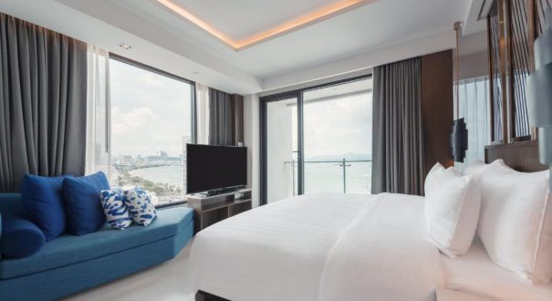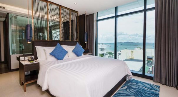 هتل MYTT Beach Hotel Pattaya یک هتل ۵ ستاره مدرن و مجلل است که در قلب پاتایا و تنها چند قدم تا ساحل واقع شده است. طراحی آن ترکیبی از سبک معاصر و لوکس با جزئیات ظریف و رنگهای روشن است که فضایی شیک و آرامشبخش ایجاد میکند.